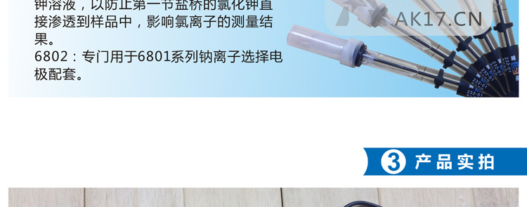 217:第二节盐桥的补充液可根据用户需求自行选择。如测量样品中较低氯离子浓度时,可以在第二节盐桥内填充硝酸钾溶液,以防止**节盐桥的氯化钾直接渗透到样品中,影响氯离子的测量结果。